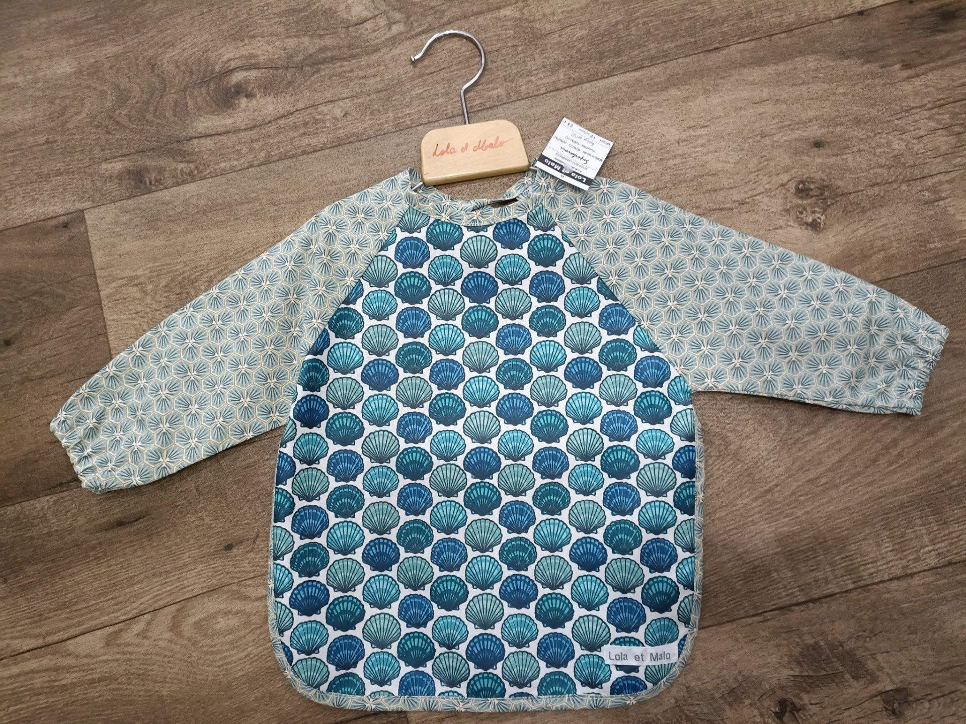 le tablier est en coton enduit, les manches en coton